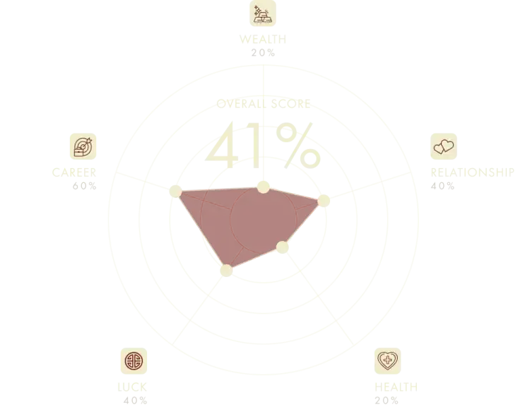 This year, due to the clash with Tai Sui and the influence of ominous stars, both financial luck and health prospects are subdued for Snake. Fortunately, auspicious stars help to balance out career and relationship fortunes. Financially, fluctuations are expected, making this a bad year for investments—careful planning and caution are advised. Windfalls should not be sought, and it’s wise to avoid gambling entirely.